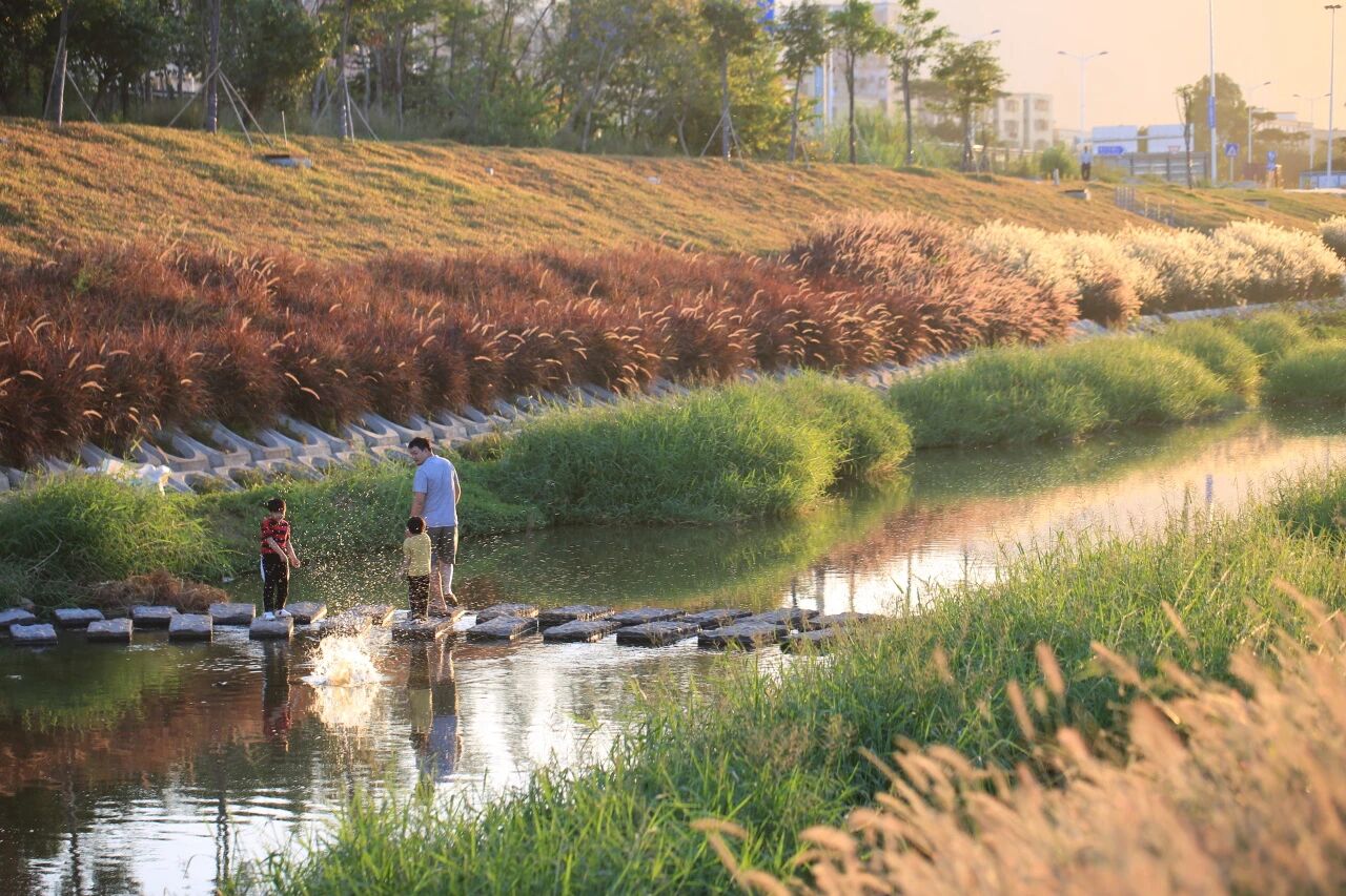 生态修正成效量化。深圳坪山河干流全河段水质从劣Ⅴ类进步至Ⅲ类及以上水质,一级支流均达地表Ⅲ类及以上水质,成为深圳五大河流中仅有水质为优的河流。河道生态流量保证率接连五年达100%,鱼类种数进步至53种、水生植物77种,水生植物掩盖度达74.29%,消失多年的唐鱼、虎纹蛙重回坪山河,马口鱼等27种清洁物种的频频现身,是水生态优异的强有力证明。