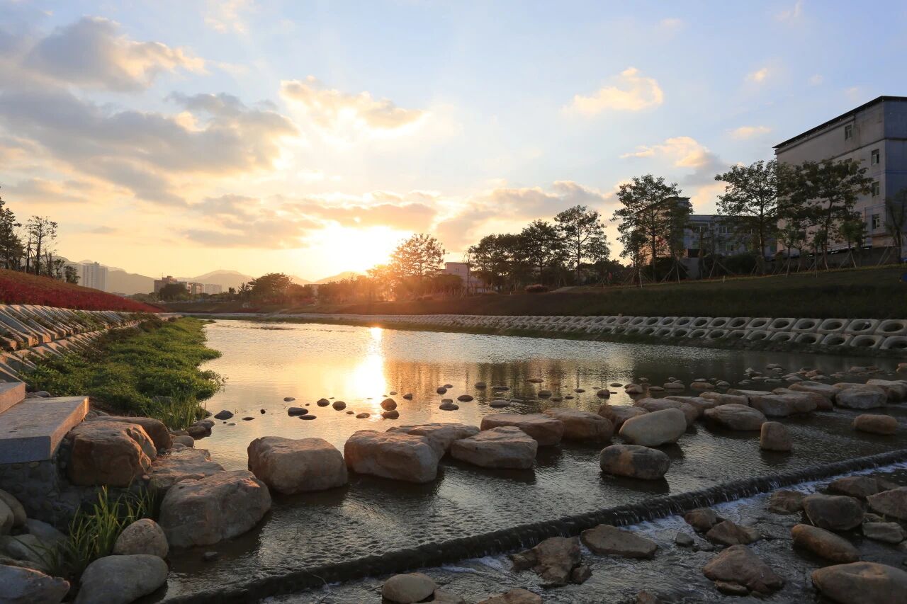 保存两岸客家古修建群(如大万世居、陈氏宗祠),区分天然生态科普区、城市滨水门户区、清水文明展现区三大功用区,经过生态护岸与耐性水岸规划,将河道天然岸线%。